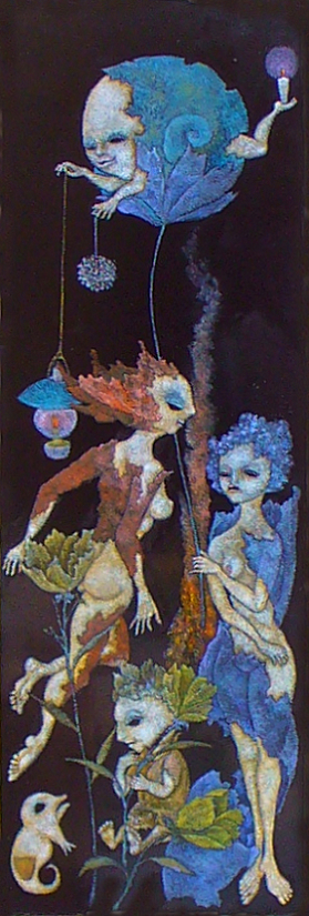 Title [レスボス島のデンデン虫虫/The S…Sna…Snail in Lesbos] 2020 35.4×11.8cm oil on [Urusi / 漆]